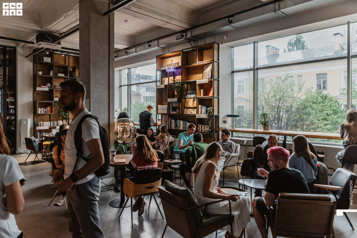 Сердце «Рельсов» — бесплатная библиотека, другие пространства центра: галерейное пространство, творческие мастерские, кафе.